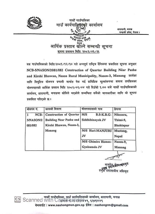 आर्थिक प्रस्ताव खोल्ने सम्बन्धी सूचना