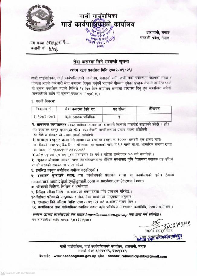 कृषि स्नातक प्राविधिक सेवा करारमा लिने सम्वन्धी सूचना
